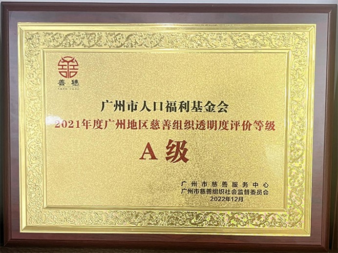 广州市人口福利基金会获得广州地区慈善组织透明度A级评价