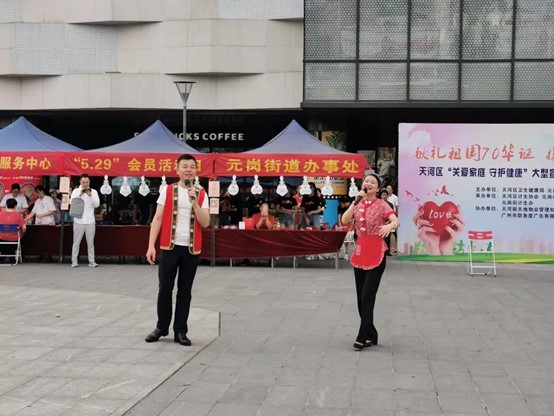 2019年5月27日下午,由天河区卫生健康局、元岗街道办事处主办的天河区“关爱家庭 守护健康”大型宣传暨健康咨询义诊活动在天河新天地前,号召全社会关爱女孩、育龄人群、贫困母亲及计生困难家庭等。