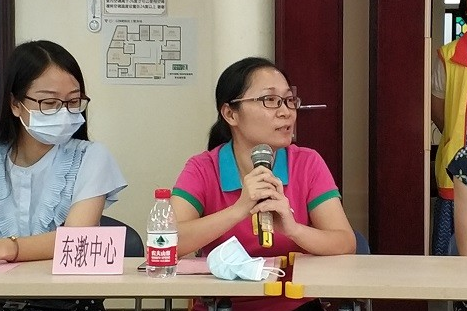 ▲东漖街社区卫生服务中心梁欢谊为未能到现场的同事莫嘉欣转达谢