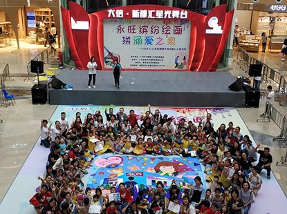 广东永旺携100组幼儿家庭作巨画、献爱心