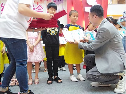 ▲广东永旺天河城商业有限公司行政总部总经理王笑蓉、大信店店长庞君铭为小天使们颁发公益爱心证书