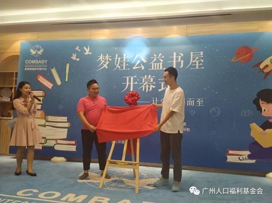 席间,邀请了广州市人口福利基金会项目部长王崇西和新爱婴国际早教中心李总共同为梦娃公益书屋的启用进行简而隆重的揭幕仪式。新爱婴国际早教中心正式成为梦娃公益书屋示范基地,为周边居民家庭提供便利的阅读场所。