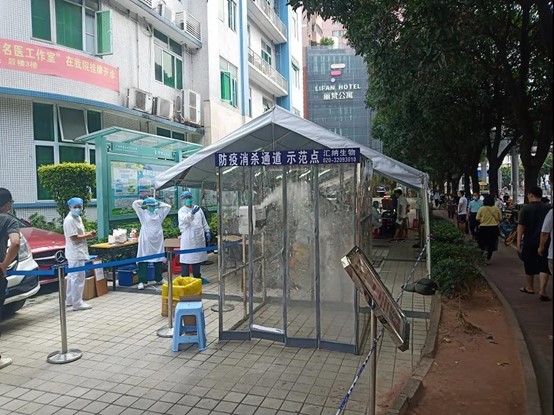 6月20日,消杀通道在海珠区中医院、海珠区沙园街道社卫中心安装投放完成,消毒仪器及设备已投入使用。院区医护工作人员表示,由于医院进出人流量大,在疫情期间有交叉感染隐患,而消毒通道为院区的防疫增加了一道有利防线,让市民去医院看病更加安心。