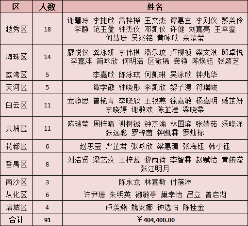 据统计,此次活动共帮助91位“阳光学子”,全市共发放扶助金共计440400元。