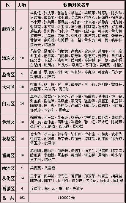 经受助人申请,村、居审查,街、区审核及市复审后,确定本次活动救助192人,每人发放救助金5000-6000元,共发放救助金1100000元。