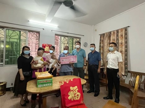 今天上午十点,广州市人口福利基金会段建华理事长在广州市白云区卫生健康局李发仁副局长、赵雪菲主任、梁益妍副主任,松州街罗副主任陪同下,亲自前往西洲社区,联合上门对陈志明同志家属进行走访慰问,并送上特别救助金10000元,广州市白云区卫生健康局也同时送上3000元,还带去了一些生活用品。