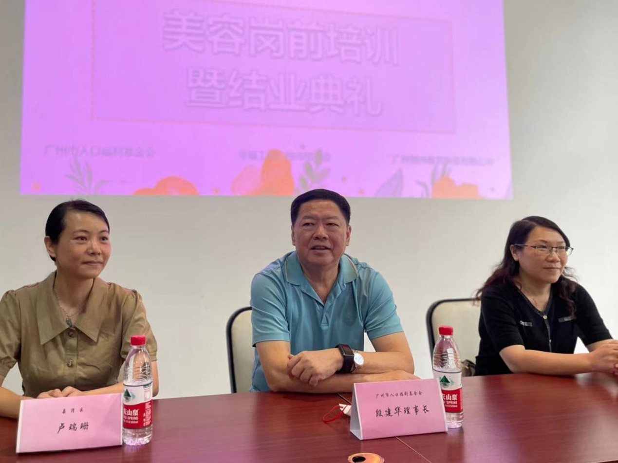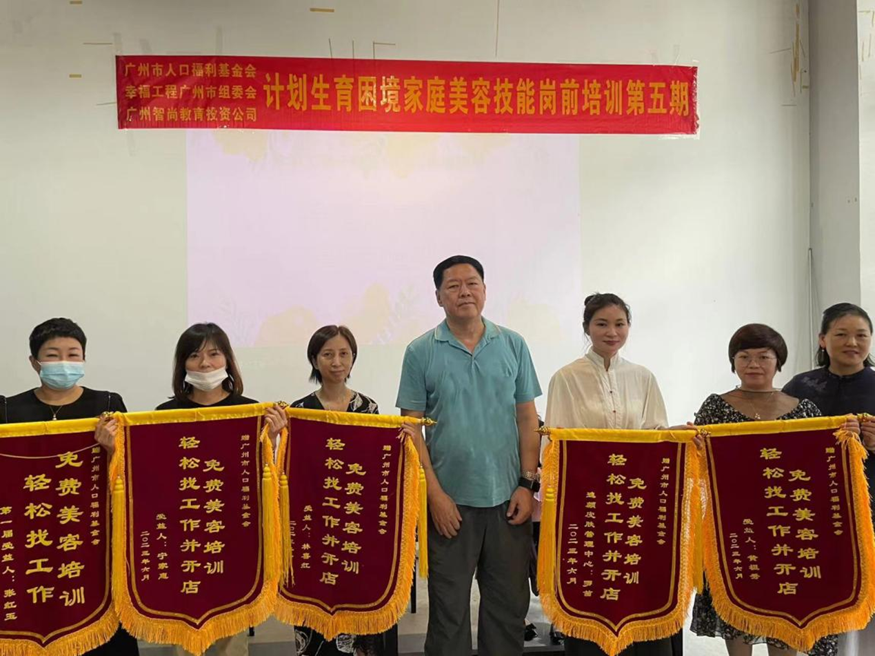 2023年6月12日上午,广州市人口福利基金会、中国幸福工程广州市组委会与广州市智尚教育投资有限公司联合开展“计划生育困境家庭困境母亲及子女就业岗前培训班(第五期)”开班仪式暨往期毕业学员成功案例分享活动。广州市人口福利基金会理事长、中国幸福工程广州市组委会办公室主任段建华;荔湾区卫健局计管中心副主任卢瑞珊;白云区计生协秘书长、幸福工程办公室主任赵雪霏;广州市智尚教育投资有限公司总经理张祝生出席了本次活动。